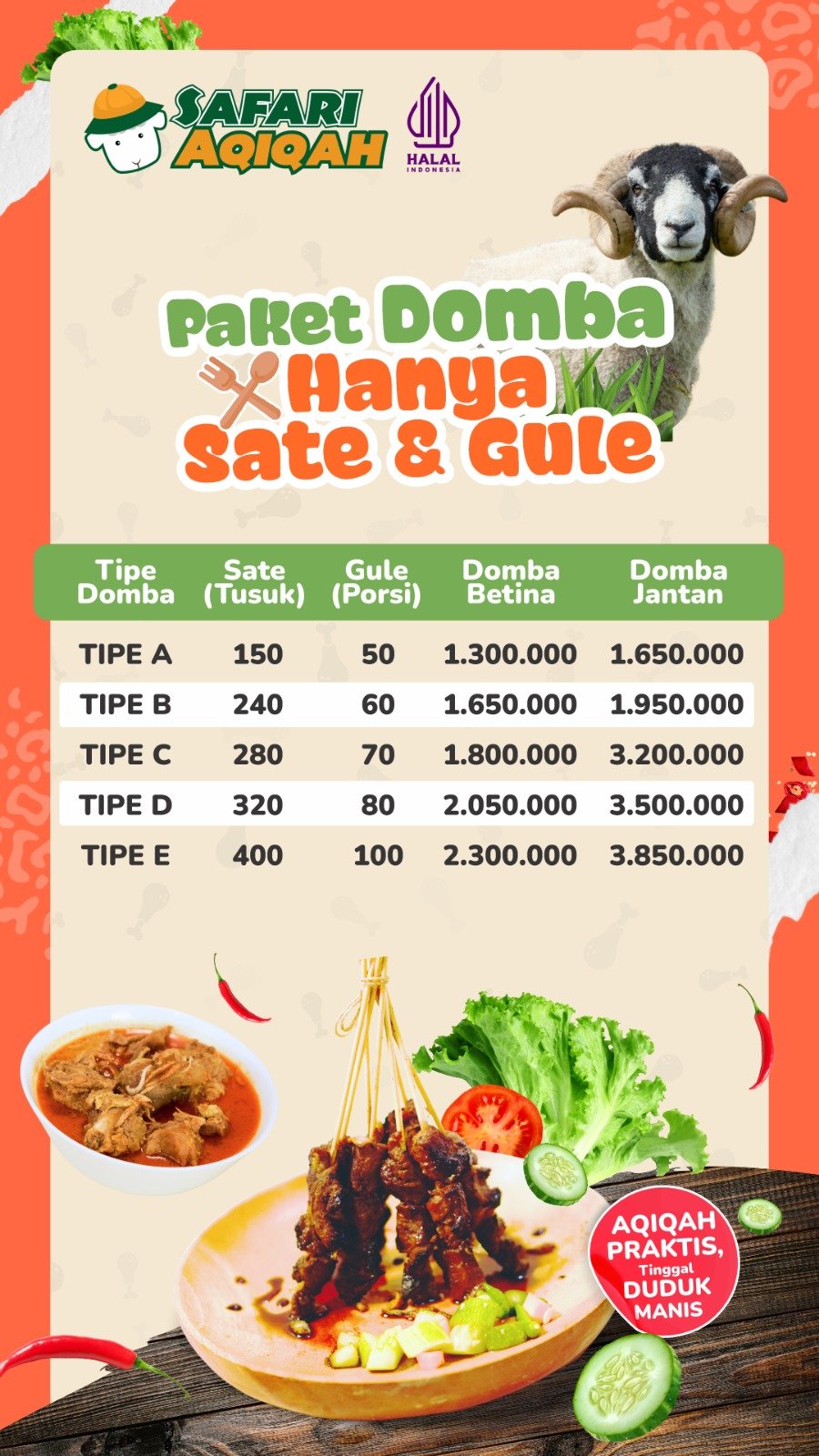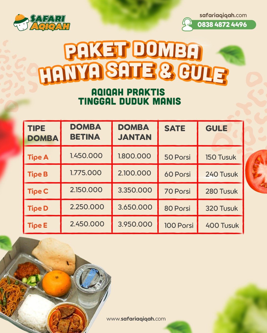 Paket domba yang sudah dimasak menjadi gule dan sate, namun bisa juga diganti dengan olahan daging varian bistik, rendang ataupun gepuk, dengan porsi yang bervariasi, tergantung tipe domba yang dipilih.